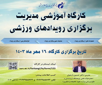 The Sports Science Research Institute of Iran (SSRI) will host a virtual workshop on Sports Event Management on October 7, 2024. The four-hour online session will be conducted by Dr. Hossein Zareiian, SSRI faculty member and Deputy for Cultural and Social Affairs.